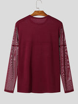 Mens Mesh Design Slim Fit Patchwork Long Sleeve T-Shirt SKUK85958
