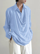 Mens Deconstructed Draped Neck Long Sleeve Shirt SKUK77376