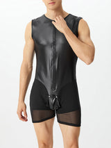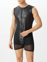 Mens PU Leather Mesh Patchwork Bodysuit SKUJ91189