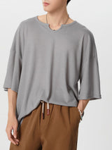 Mens Waffle Knit Drop Shoulder Loose Shirt SKUJ38881