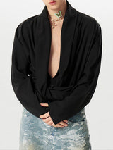 Mens Draped Neck Ruffled Long Sleeve T-Shirt SKUK83713