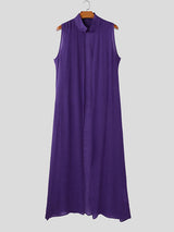 Mens Solid Color Stand Collar Sleeveless Long Cardigan SKUL05725