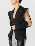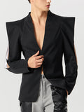 Mens Steampunk Cutout Sleeve Solid Blazer SKUK24881