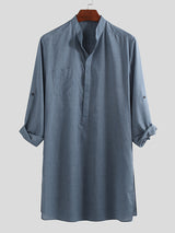 Mens Asymmetric Hem Long Sleeve Shirts SKUE21164