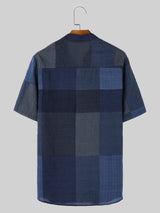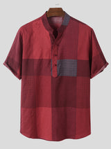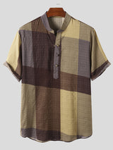 Mens Stand Collar Plaid Short-sleeved Shirts SKUI90934