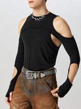 Mens Cutout Crew Neck Long Sleeve Bodysuit SKUK28608