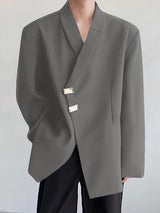 Mens Asymmetrical Placket Padded Shoulder Casual Blazer SKUK73580