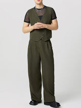 Mens Solid Color Asymmetric Design Two Pieces Outfit SKUK92697