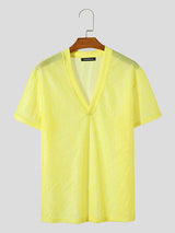 Mens Mesh V-Neck Short Sleeve T-Shirt SKUK65490
