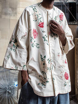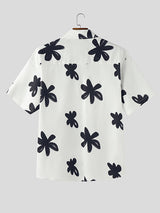 Men's 3D Floral Patchwork Cropped Long Sleeve Shirt SKUL45336