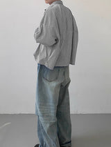 Mens Striped Cutout Stand Collar Long Sleeve Shirt SKUK69198