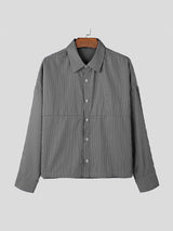 Mens Striped Double Pockets Long Sleeve Shirt SKUK53614