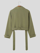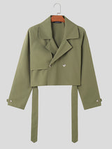 Mens Solid Lapel Double Breasted Crop Top SKUK31896