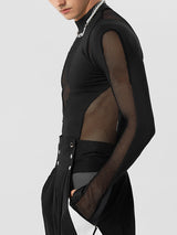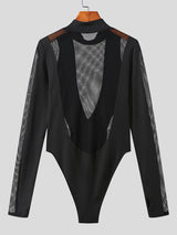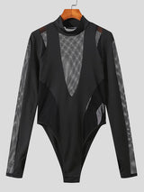 Mens Mesh Patchwork Half-Collar Bodysuit SKUK05972