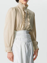 Mens Frill Trim Neck Button Shirt SKUI95454