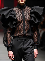Mens Lace Patchwork Ruffle Long-Sleeve Shirt SKUK85581