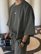 Lockeres, vielseitiges Shorts-Set mit halblangen Ärmeln für Herren SKUH63924