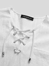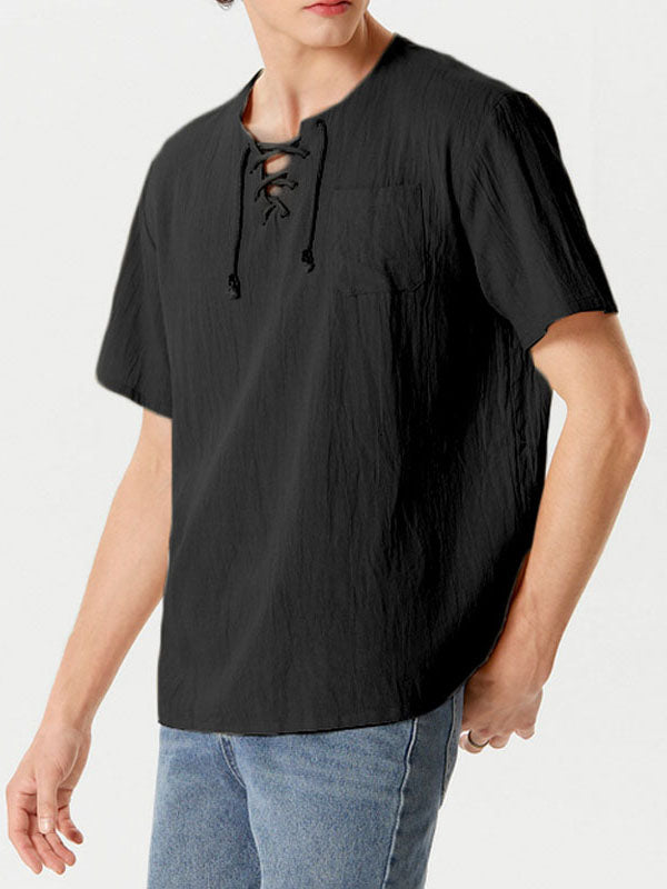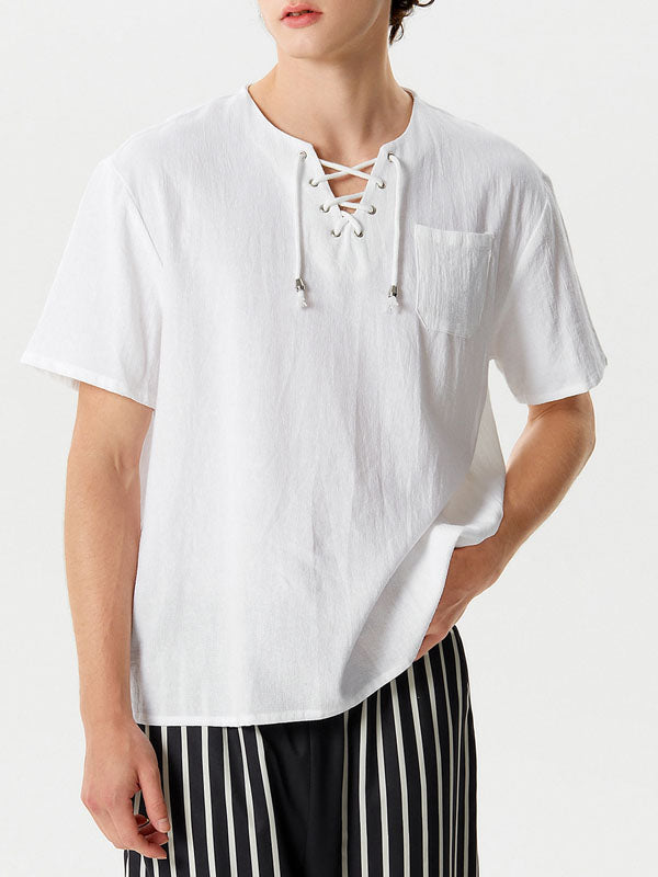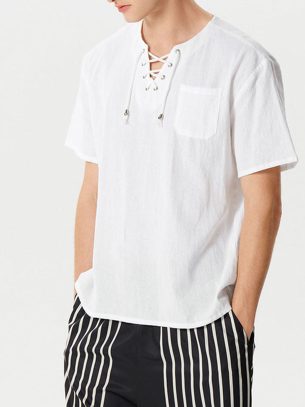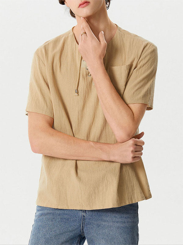 Lässige Kurzarmhemden mit Ösen-Kordelzug für Herren SKUI90676