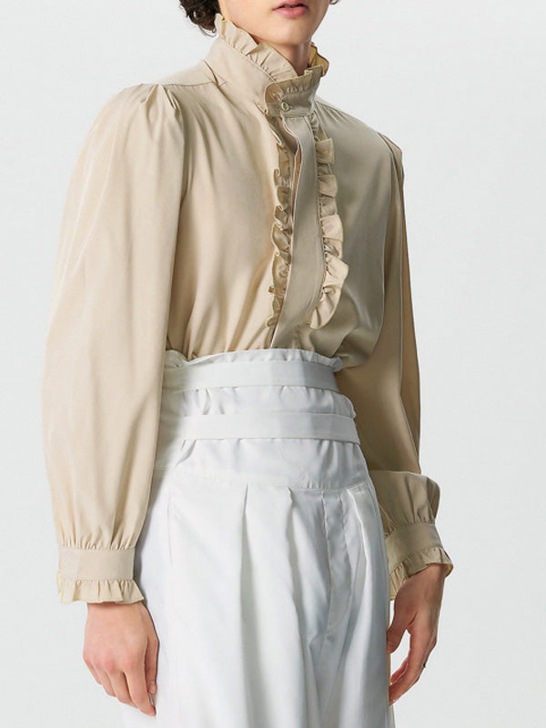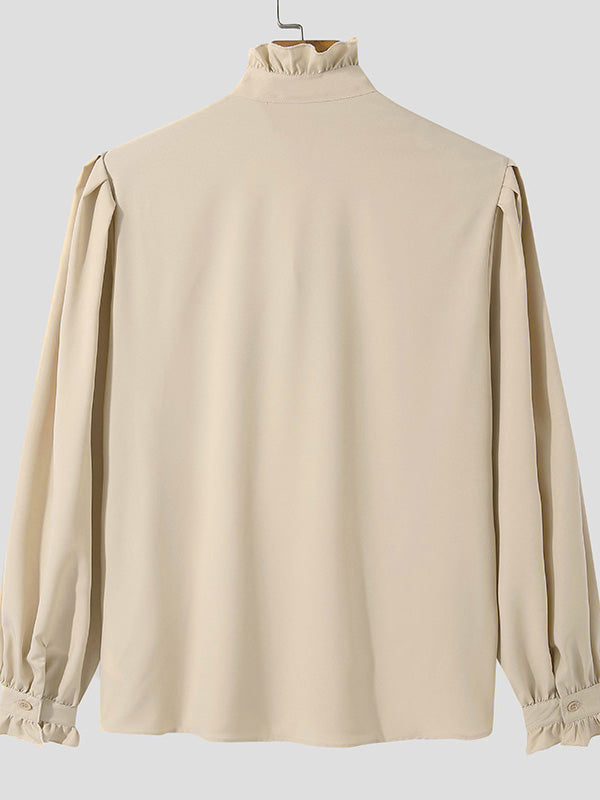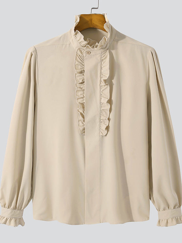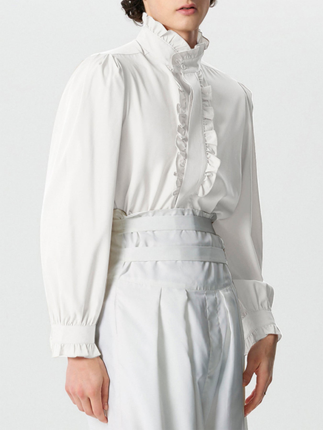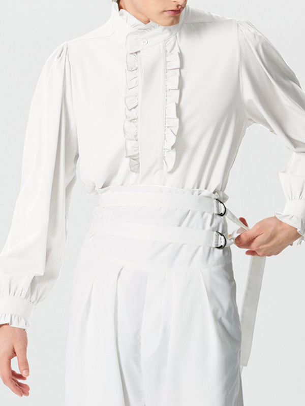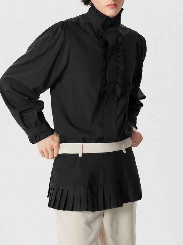 Herrenhemd mit Rüschenbesatz am Hals und Knöpfen SKUI95454