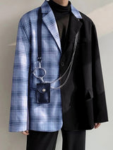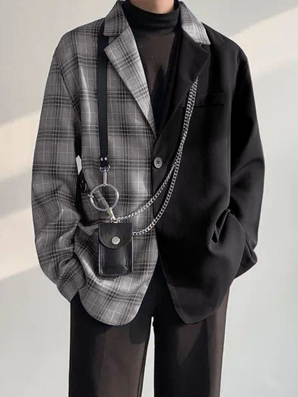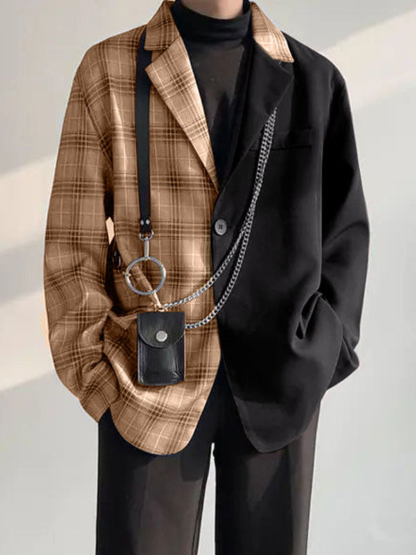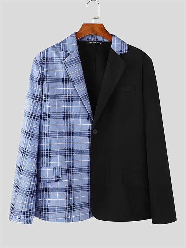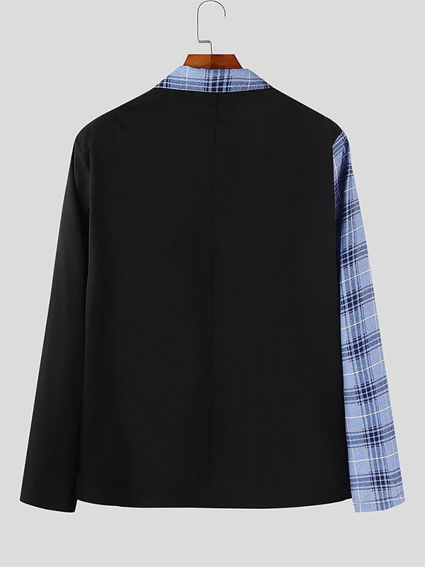 Mens Plaid Patchwork Long Sleeve Blazer SKUK76960