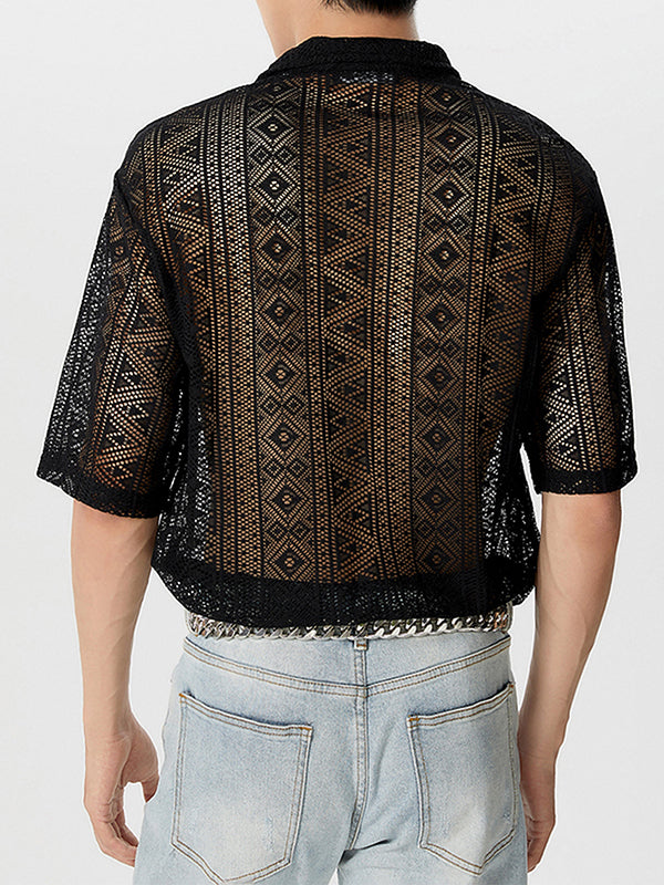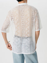 Sexy lockere Hemden aus hohler Spitze für Herren SKUH98947