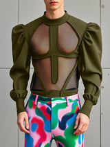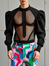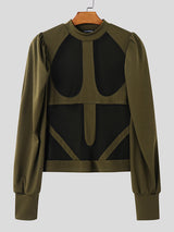 Mens Sheer Mesh Panel Long Sleeve T-Shirt SKUK94769