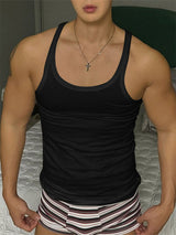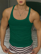 Mens Solid Color Casual Slightly Sheer Tank SKUL01339