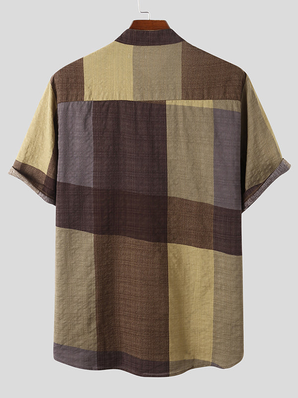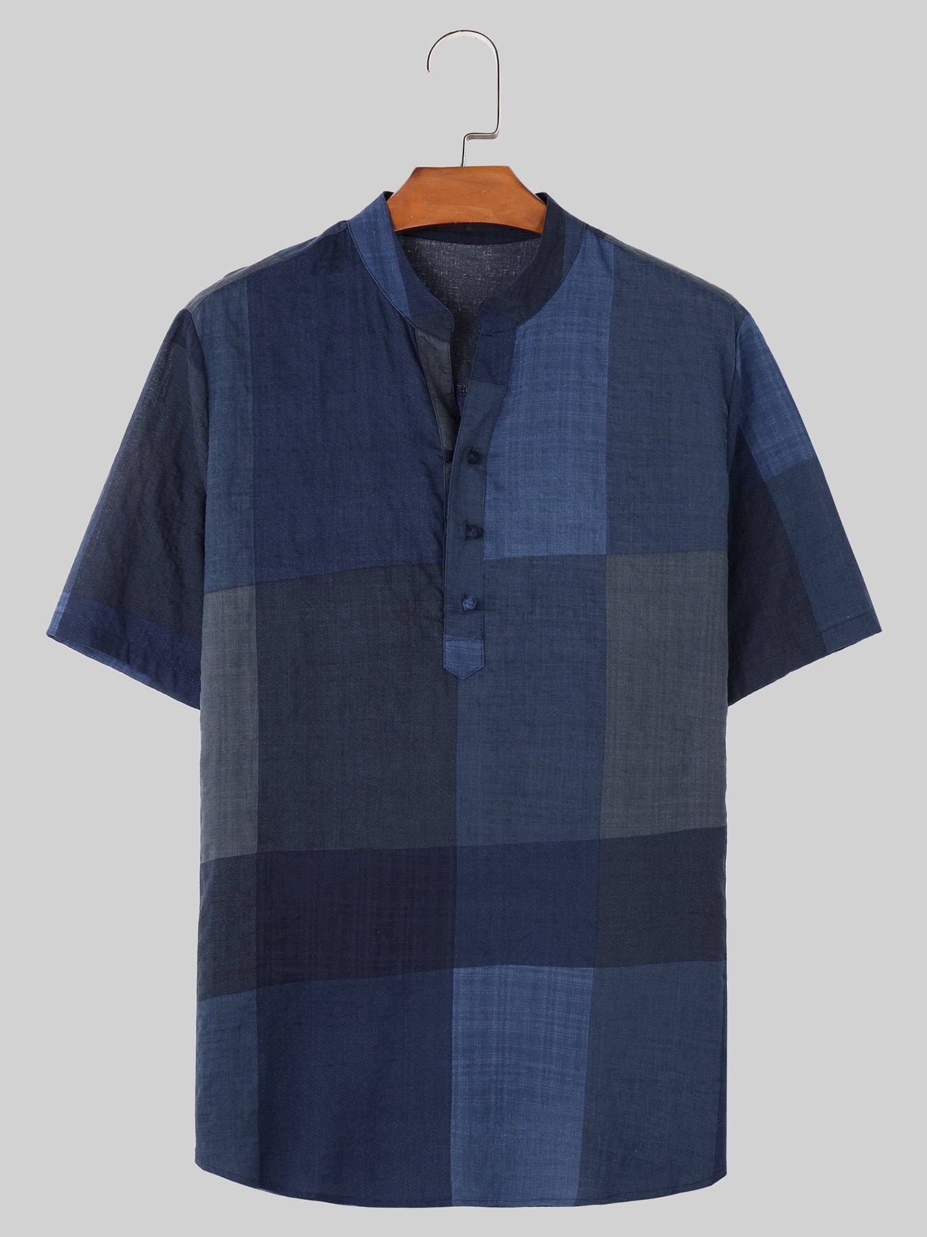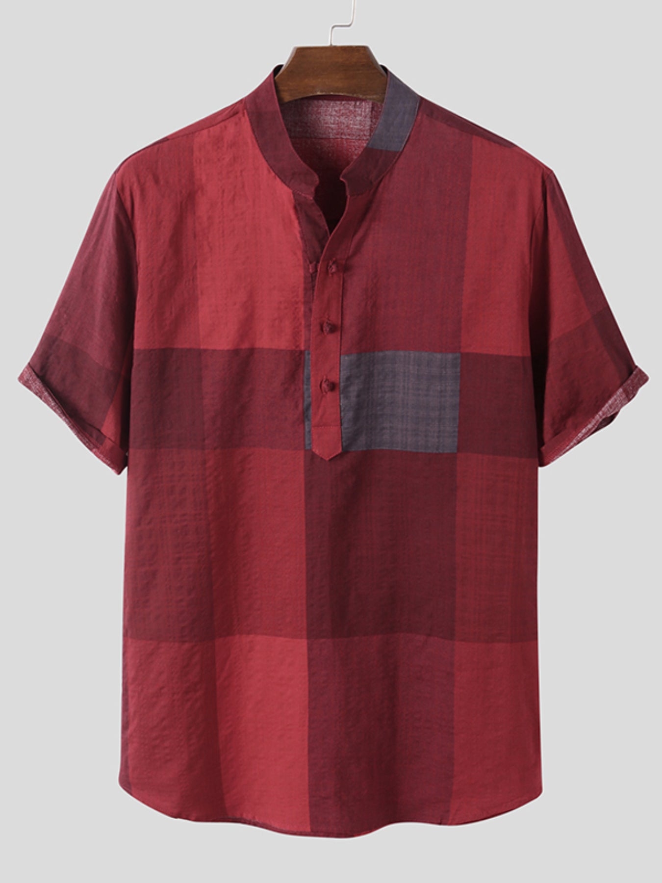 Karierte Kurzarmhemden für Herren mit Stehkragen SKUI90934