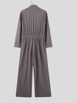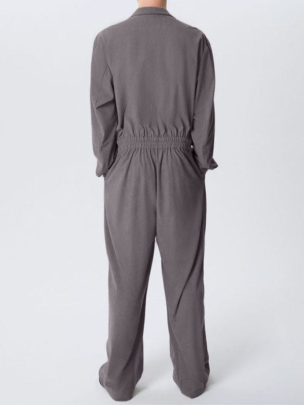 Mens Textured Striped Long Sleeve Jumpsuit SKUK74991