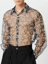 Men's Sexy Hollow Lace Loose Shirts SKUH98947