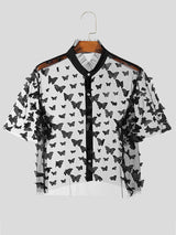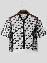 Mens Butterfly Print Mesh Sheer Short Sleeve Shirt SKUL08501
