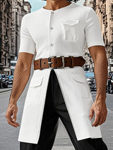 Mens Oversized Solid Color Short-Sleeve Cardigan SKUK91135