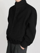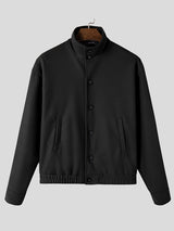 Mens Solid Stand Collar Button Front Jacket SKUK40029