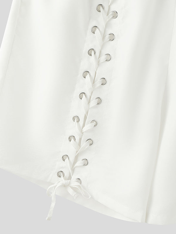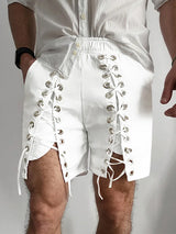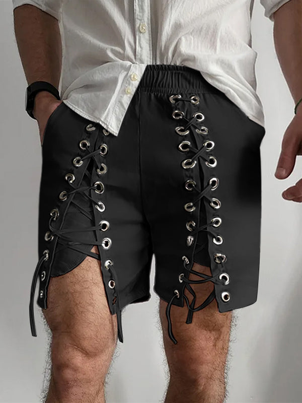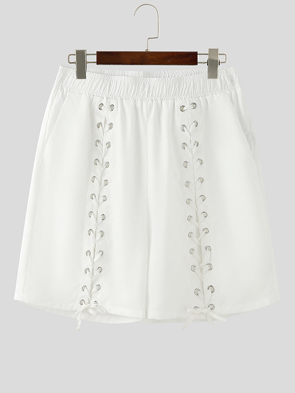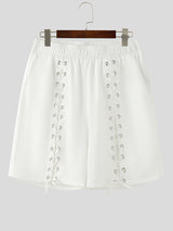 Mens Solid Lace-Up Interwoven Short SKUK93686