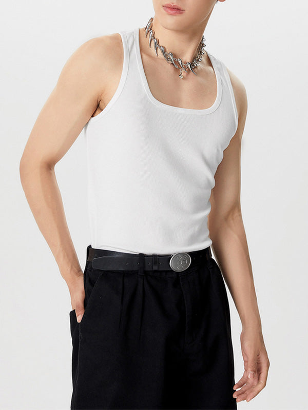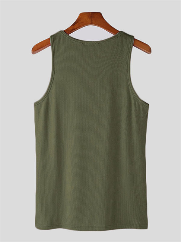 Mens Solid Square Collar Sleeveless Vest SKUK11850