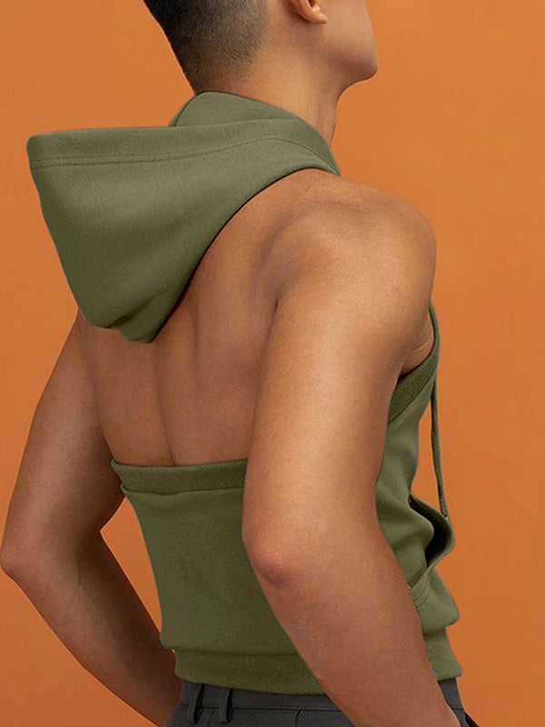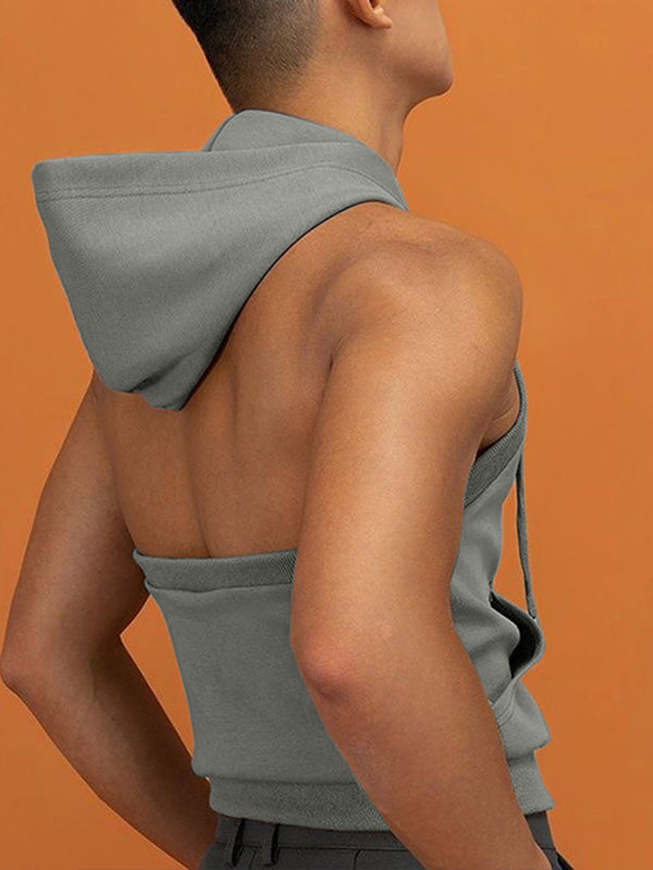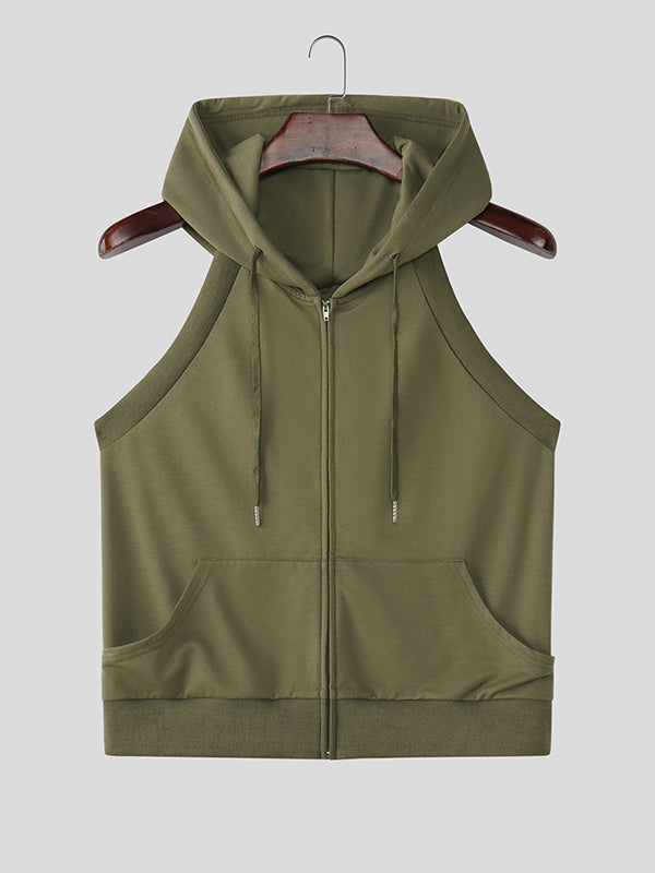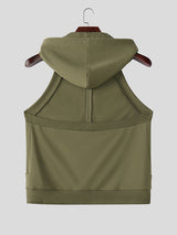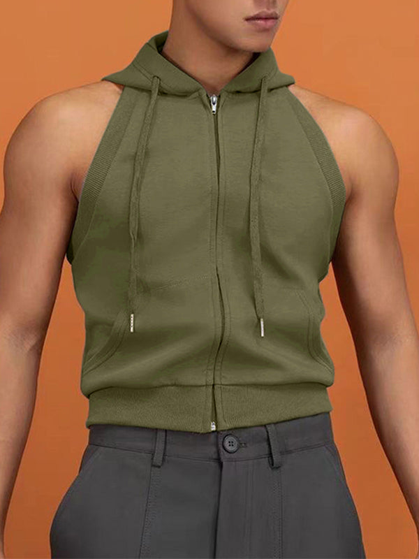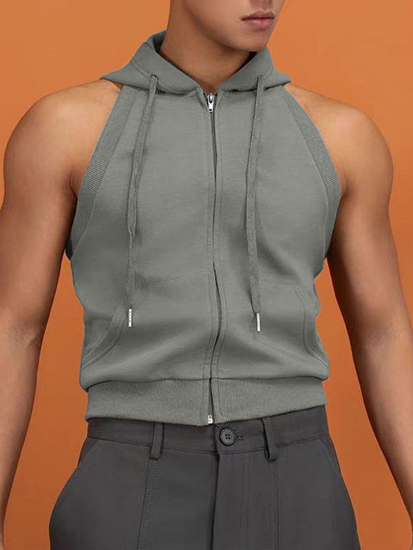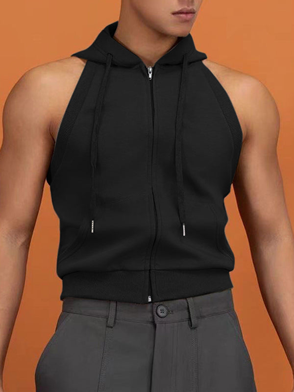 Mens Zipper Slim-Fit Hooded Sleeveless Tank SKUK90465