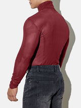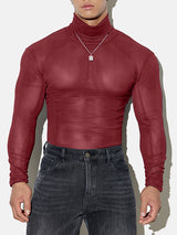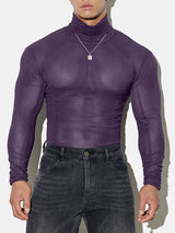Mens Sheer Mesh Turtleneck Long-Sleeve T-Shirt SKUK93679