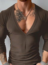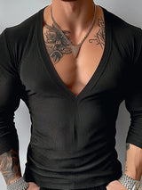 Mens Textured Asymmetrical V-Neck Long-Sleeve Sweater SKUK82215