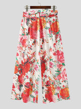 Mens Floral Print High Waist Straps Pants SKUK55937