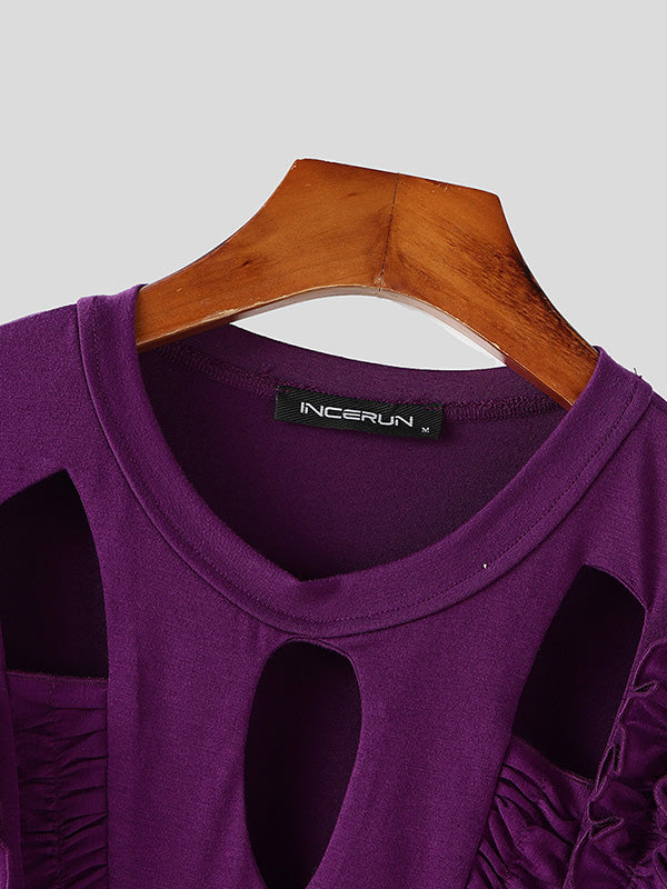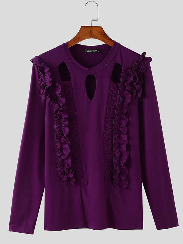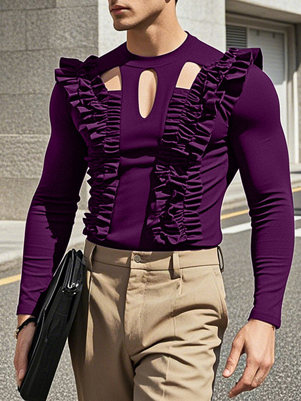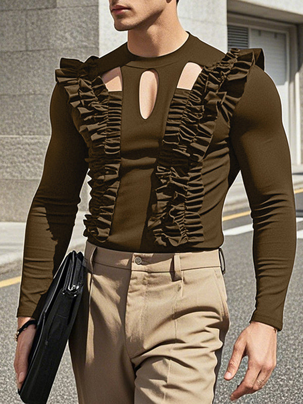 Mens Cut-Out Ruffle Long Sleeve T-Shirt SKUK94753