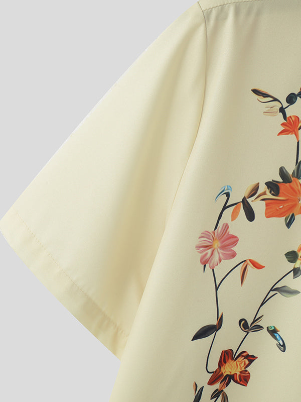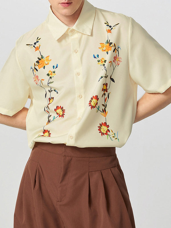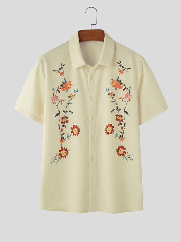 Mens Floral Print Lapel Collar Short Sleeve Shirt SKUK61132