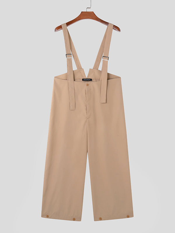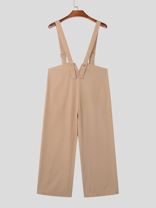 Mens High Waist Metal Button Wide Legs Overalls SKUK51634