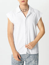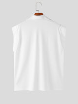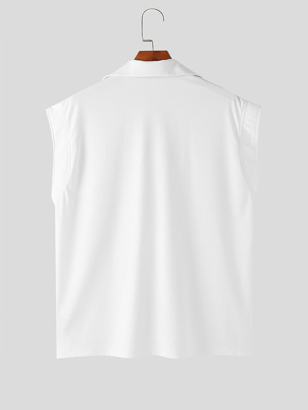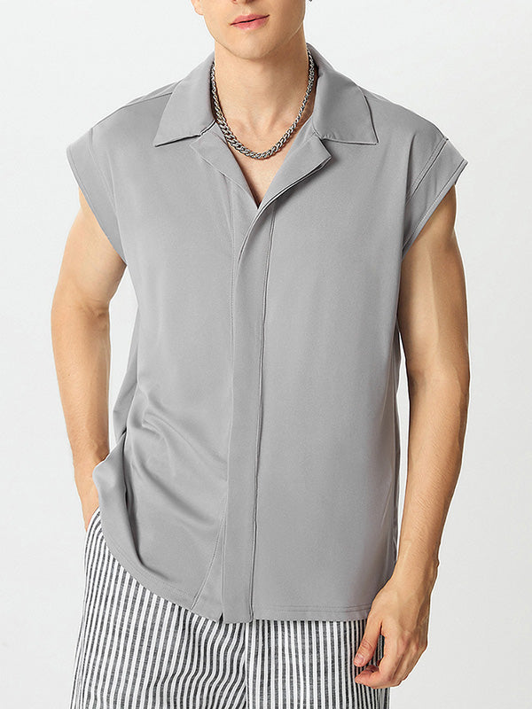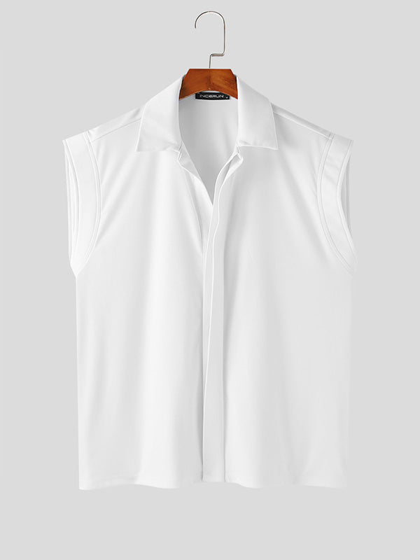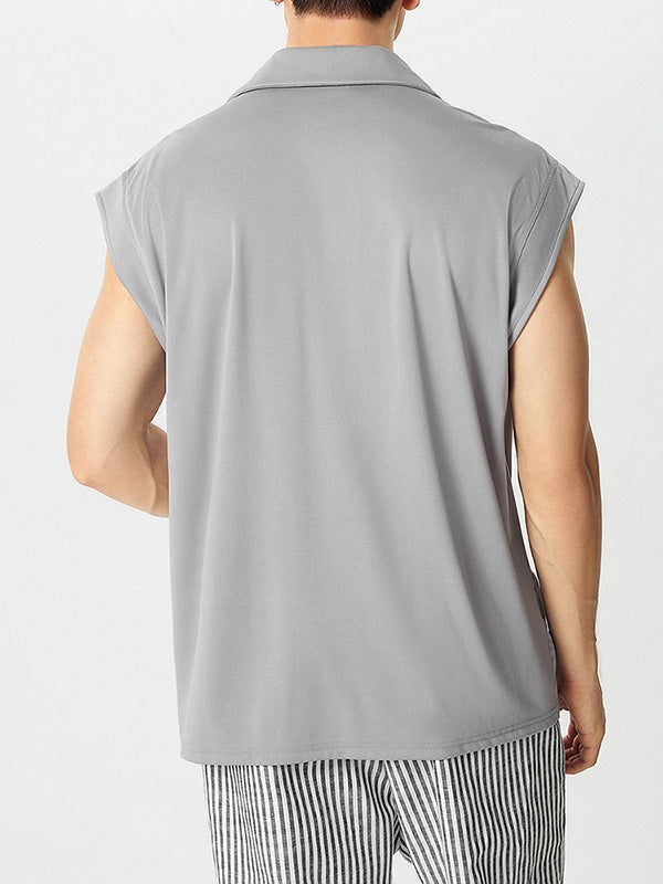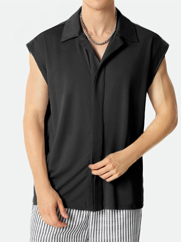 Mens Solid Lapel Casual Sleeveless Shirt SKUK49447