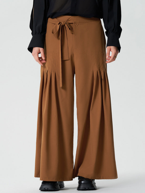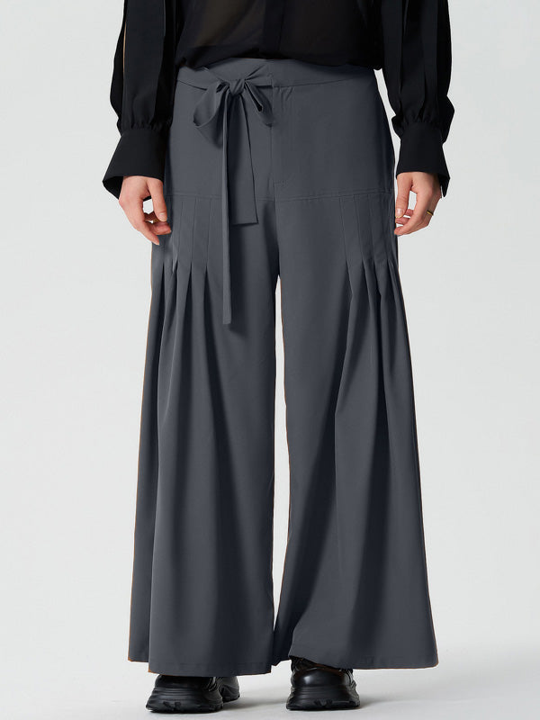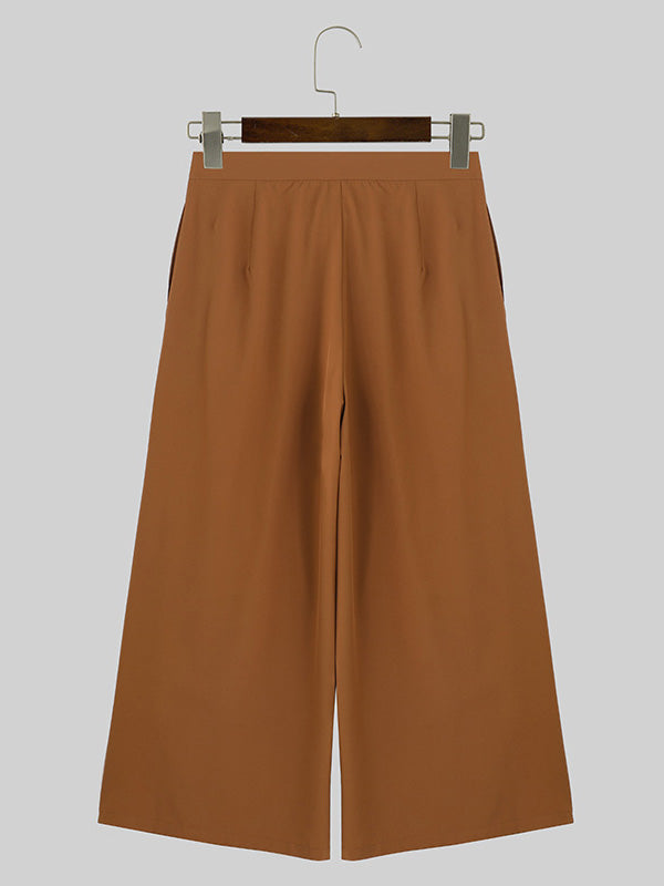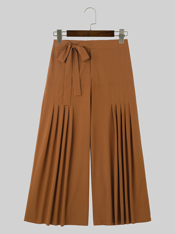 Mens Solid Pleated High Waist Casual Pants SKUK53640