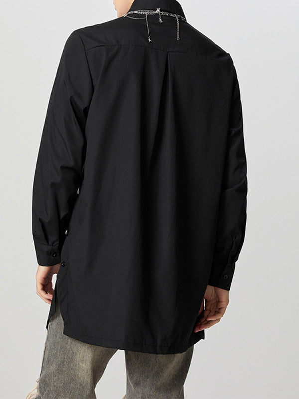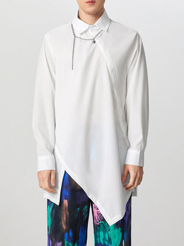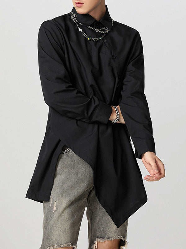 Mens Asymmetric Hem Long Sleeve Shirts SKUE21164