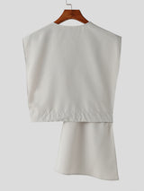 Men's Solid Color Ruffle Hem Sleeveless Waistcoat SKUL23520