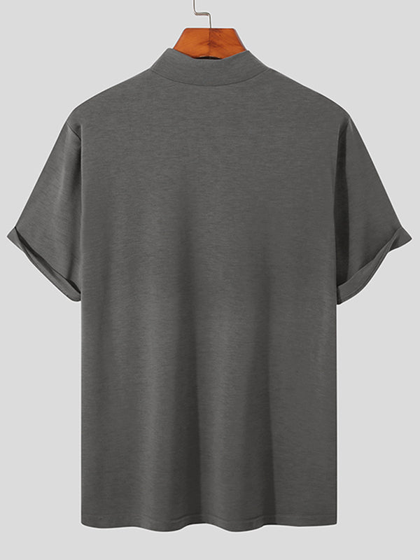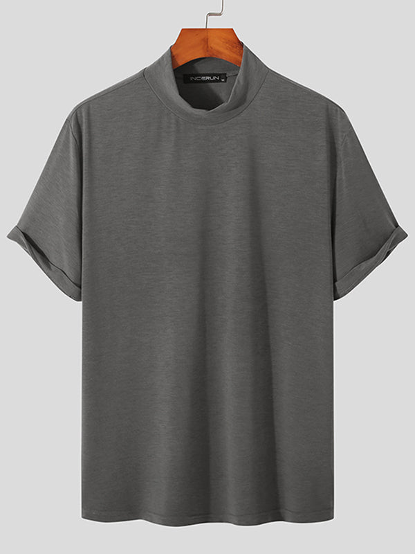 Mens Solid Mock Neck Short Sleeve Tee SKUJ35727