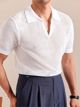 Men's Hollow Mesh Cropped Long Sleeve T-shirt SKUL46551
