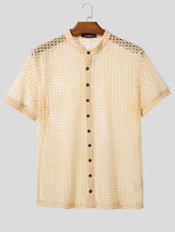 Men's Ribbon Patchwork Hollow Mesh Long Sleeve Shirt SKUL46178