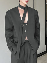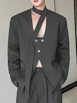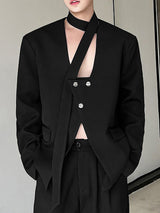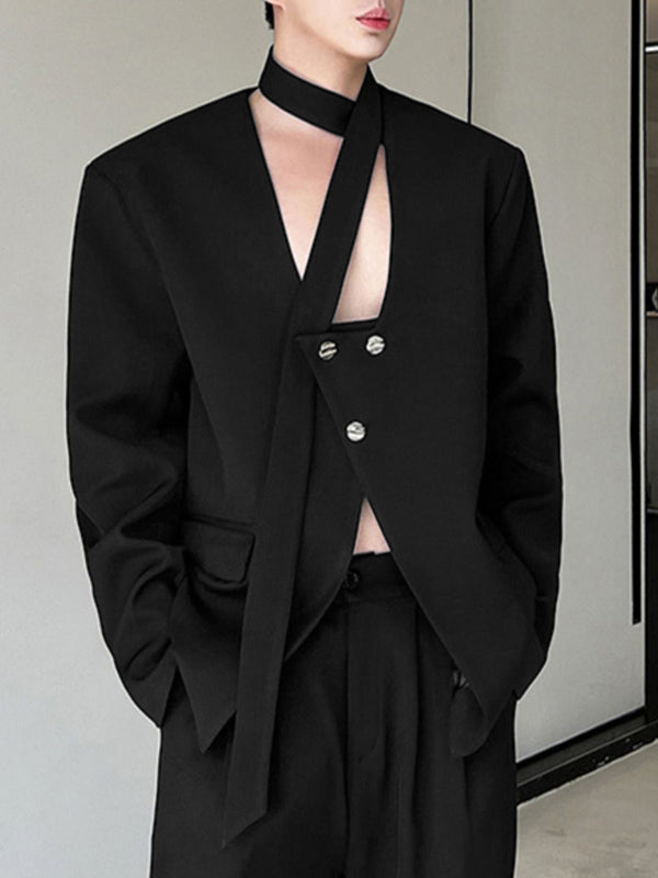 Mens Hollow Out Design Tie Long Sleeve Blazer SKUK80360